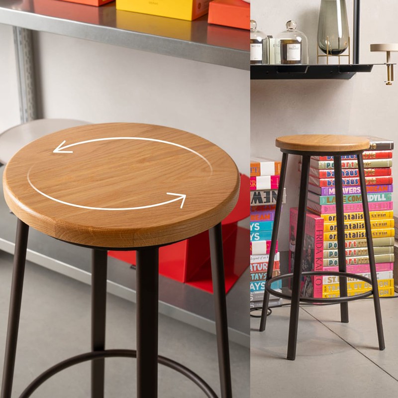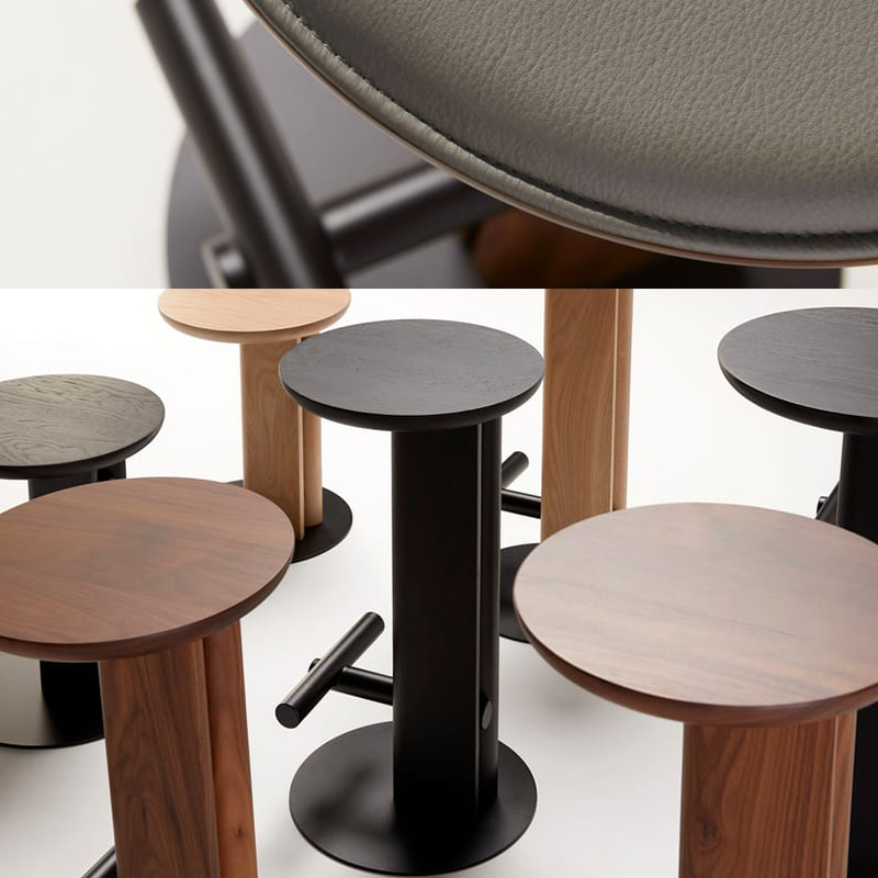 Giro是一款设计简洁的酒吧凳,配有可360°旋转的木质座椅和带脚踏的结构,以提供支撑和稳定性。