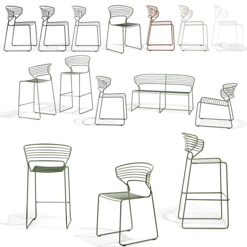 TUBE系列包括六款出众的产品:椅子、茶几、餐桌、长凳、吧台桌和吧椅。