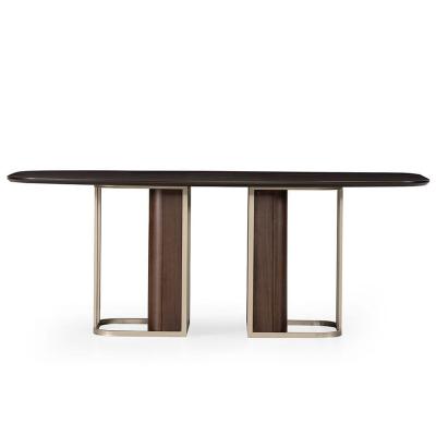 葡萄牙普拉迪伦巴桌长桌餐桌办公桌会议桌 土豪金铜色轻奢不锈钢大理石实木桌