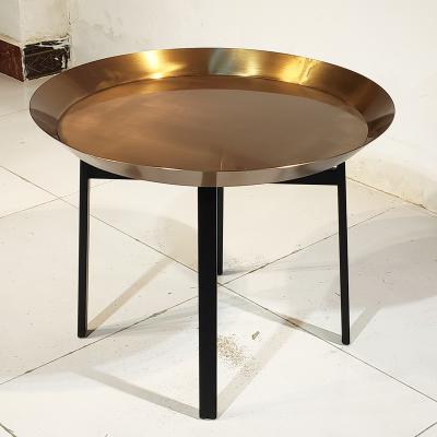 意式极简轻奢不锈钢 工业风圆形圆盘 金属角几边几 电镀拉丝茶几