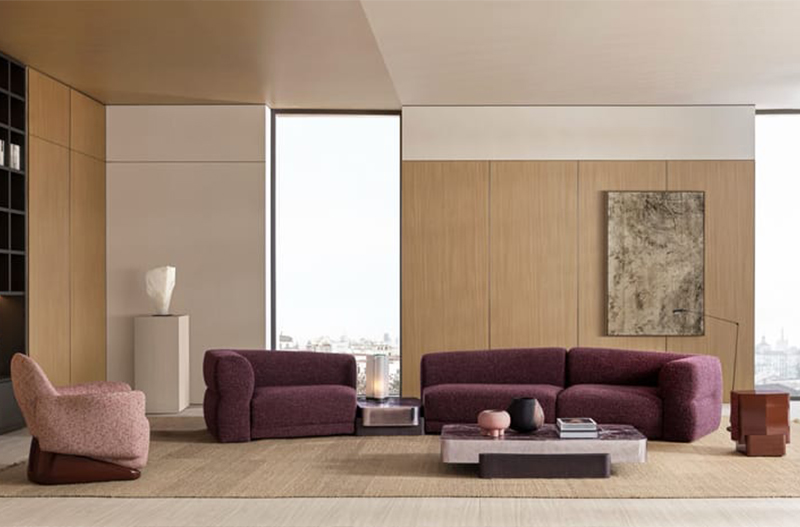 Eugène以其轮廓和高靠背而闻名,旨在提供温馨的座椅体验。每种形式都在统一的设计中实现了美学平衡,所有组件都固定在一个坚实、无缝集成的基础上。