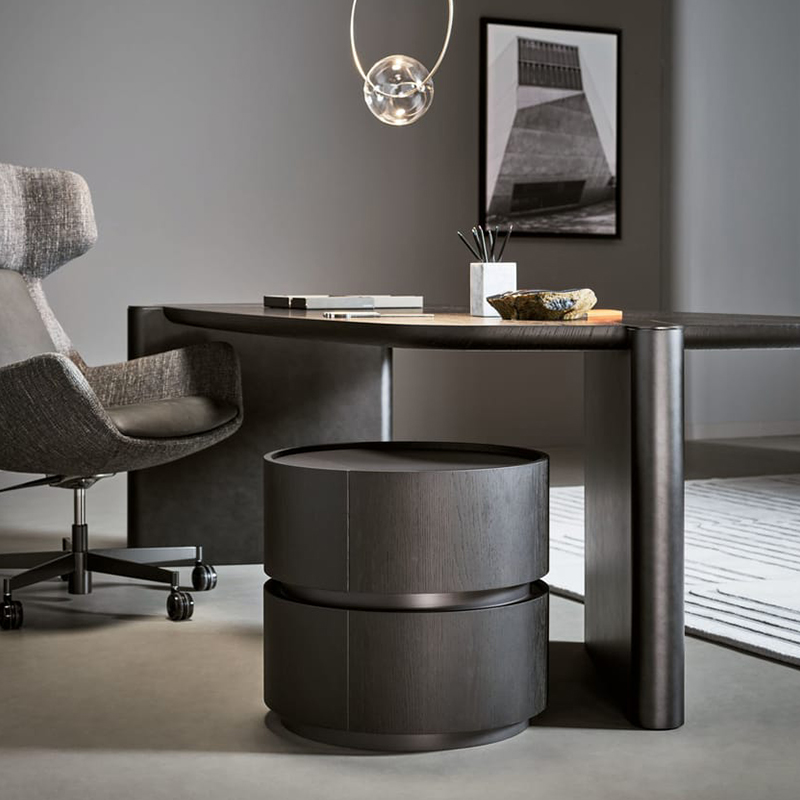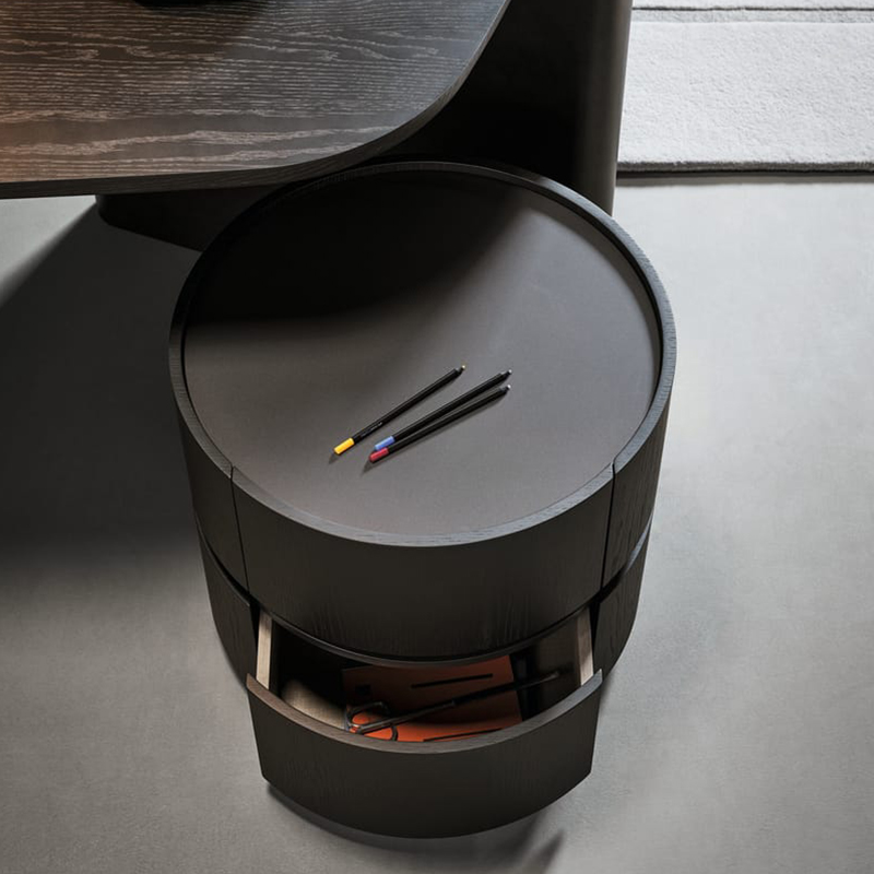 Moneypenny五斗柜是所有办公区域中低调且不可或缺的伙伴,因为它能让文件得到妥善且保密的存放。无论是单独使用还是与书桌搭配,都以其精致的美学设计而著称。五斗柜的设计简洁,呈现出优雅的弧形木质圆柱体,结合大型一体化抽屉的滑动机械效率,使其成为一款多功能家具,适用于任何环境,无论是专业办公室还是家庭办公室,无论是客厅还是卧室。