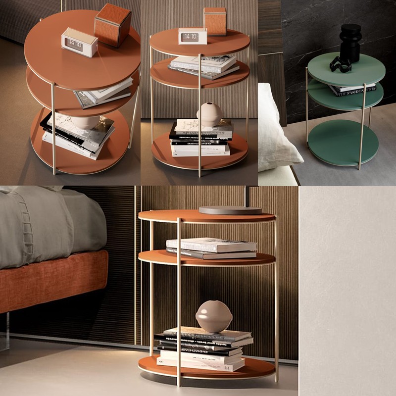 风格简约、图案轻盈的床头柜在金属结构的映衬下,用其轮廓和纤薄的厚度打造出了稳固遒劲的风格 其饰面有阳极青铜、白色、哑光打磨、黑色、灰褐色、氧化物,床头柜还搭配了一个抽屉和三层置物架。