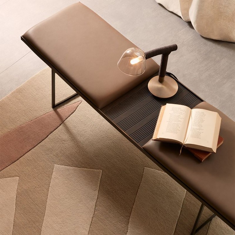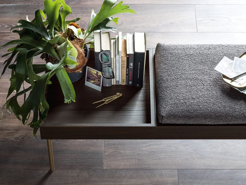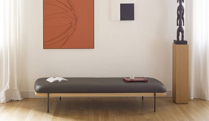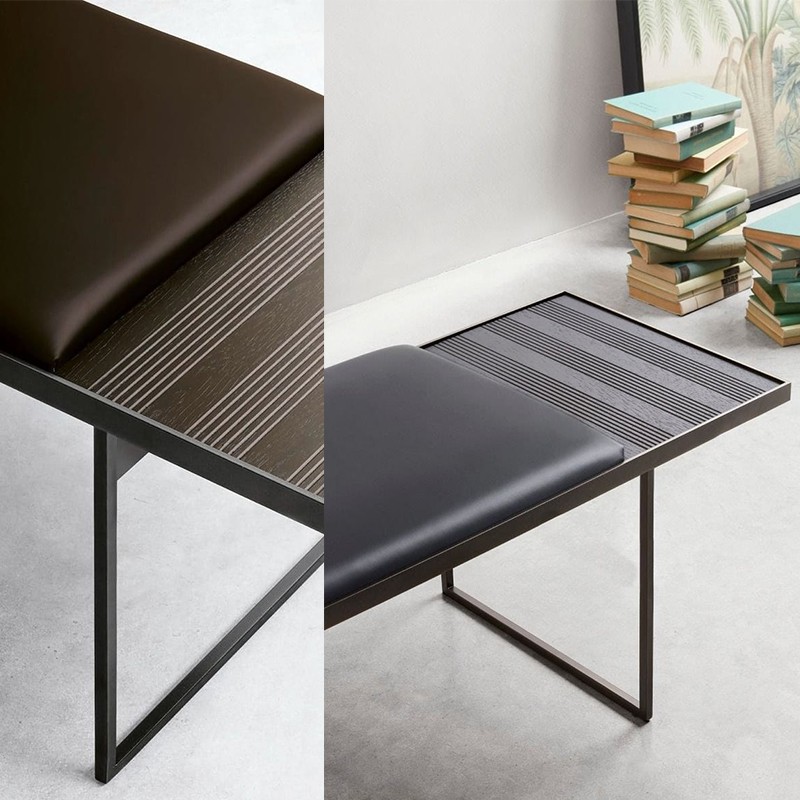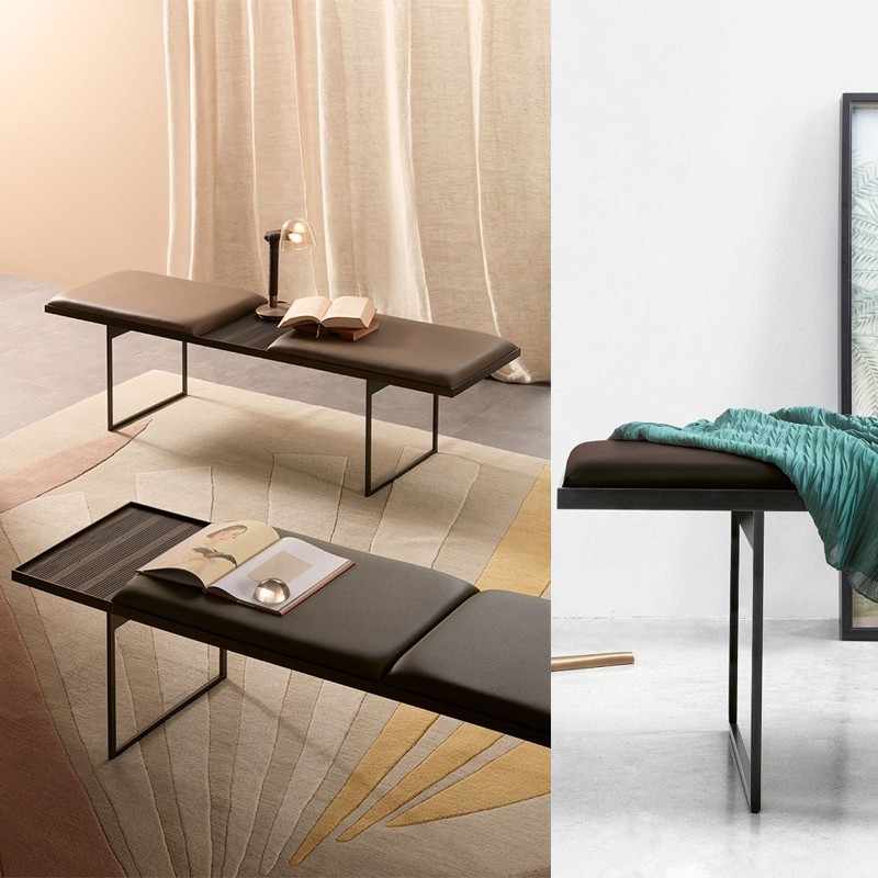 优雅低调的美学和天生的多功能性,为家庭空间带来了轻盈:可放置在卧室、客厅还是入口等。线条的简洁性和不同材料的组合所强调的运动,皮革或生态皮革双垫的软垫座椅,两侧或中央有一个自由的部分,其中有一个托盘集成在框架中,为小型物品的容器。