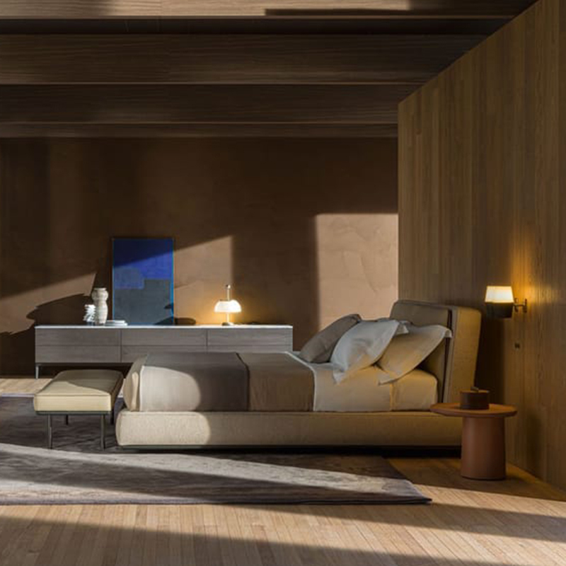融合了现代线性风格和对意大利高级工艺的追求。结合了木材和金属的框架,侧面使用皮革还美匹配。