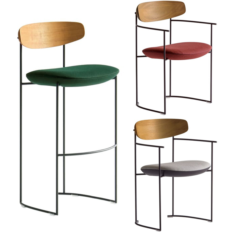 第八款: 软包吧椅Potocco 波托科设计 VELIS WOOD 942/AW 凳子新中式复古高脚吧椅北欧风格