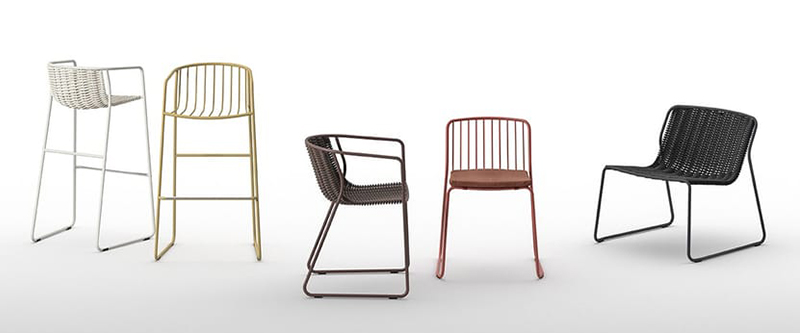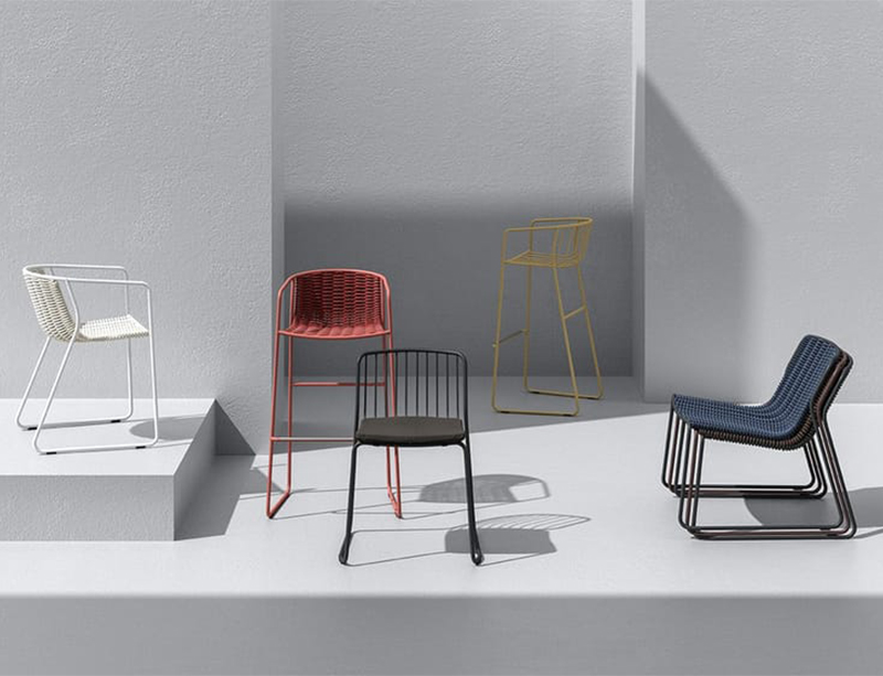 钢架的凳子,有坐垫可供选择。Randa是设计界和航海界之间的联系点,Randa有一个涂漆的钢架和由航海绳制成的座椅,具有出色的防潮、防海浪和防晒性能。交织的绳索为座椅增添了轻盈的夏季外观,使其非常适合在所有户外环境中使用。