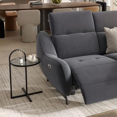 Bloom沙发从生活的需要出发,融入现代设计和创新理念,精心打造了一个多功能电动沙发系统。配备手动可调头枕。还可以选择配备存储、读取和无线充电器的多功能中间位置模块。它有1个带储物空间和饮料架的中控台。按下按钮,座椅向前滑动,脚踏板不断向上移动。一个真正的放松和幸福的天堂,在那里你可以享受一点“自我时间”。