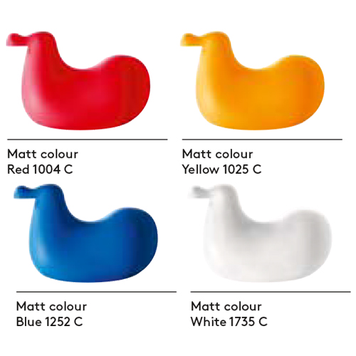 Dodo is a rocking chair/bird for children created by the Finnish designer Oiva Toikka, famed worldwide for his collection of glass birds designed for Iittala. With Dodo the same fully defined shape of Toikka’s glass sculptures is now applied to plastic to create an object whose natural habitat lies both in the home and in the garden.