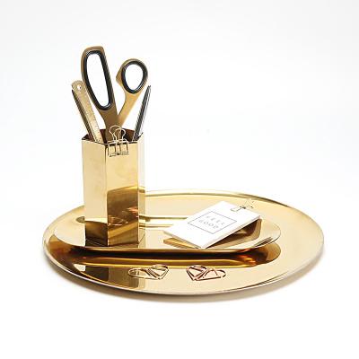 北欧设计 金色剪彩盘婚庆托盘 点心水果盘装饰盘茶几烛台圆盘 规格颜色可定制