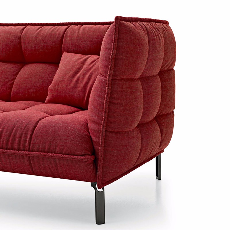 Created with a softer and more flexible structure, Husk boasts deep seats and down feather cushions allowing for maximum comfort. Husk is available in two sizes. The shorter version combines the seat with a backrest, whereas in the longer version, the two cushioned components are separated. Whether in a solid colour or mélange fabrics, Husk maintains a casual elegance.