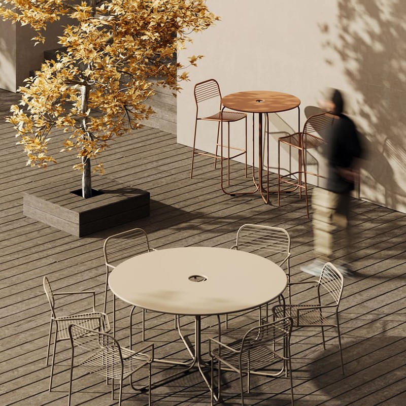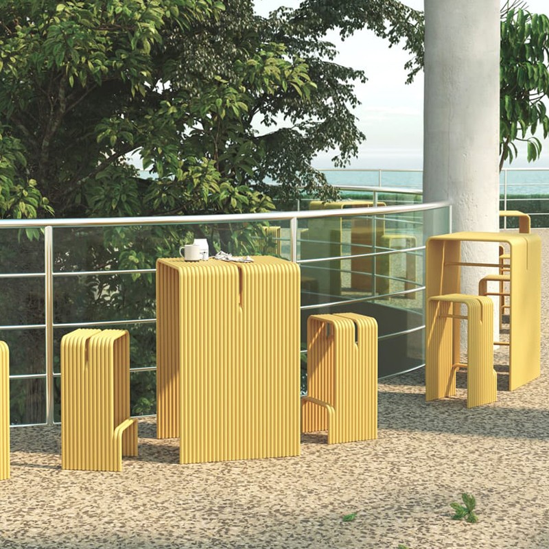 TUBE系列包括六款出众的产品:椅子、茶几、餐桌、长凳、吧台桌和吧椅。