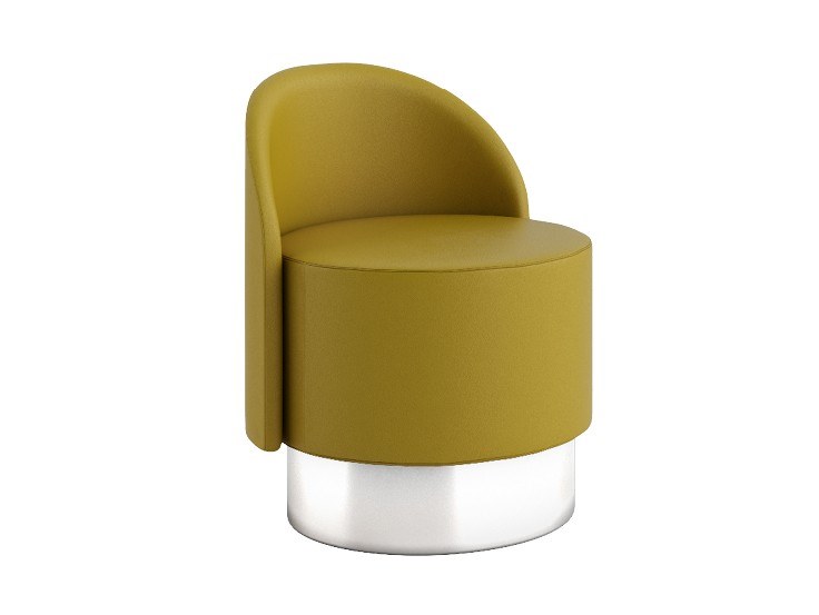 Seat and backrest frame in beech plywood. Fixed or revolving base covered with satin-finished brass, in hand-finished burnished metal or in satin nickeled metal, with matte varnish. On request it is possible to have the base in a different metal, with a surcharge to be defined according to the metal chosen. Differentiated density polyurethane foam filling with acrylic fibre covers. Decorative piping and button in the same shade of leather; upon request, it is possible for the decorative piping and the button to be in the other shades of leather shown in the catalogue.