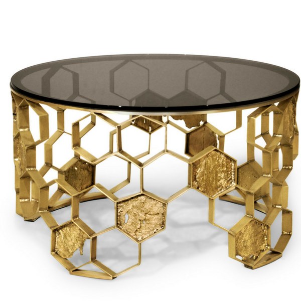 麦卢卡是世界上最独特和有益的蜂蜜形式之一,由一种只生长在新西兰的花制成。麦卢卡中心表是一个精致的,像一个光荣的蜂巢。老年人冰铜黄铜结构和青铜玻璃桌子上使它适合现代室内设计,