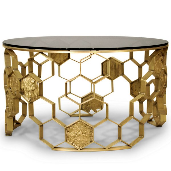 Manuka is one of the most unique and beneficial forms of honey in the world and made from a flower that only grows in New Zealand. The MANUKA Center Table is an exquisite piece that resembles a glorious beehive. The aged matte brass structure and bronze glass table top make it the perfect fit for a modern interior design.