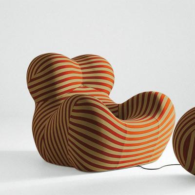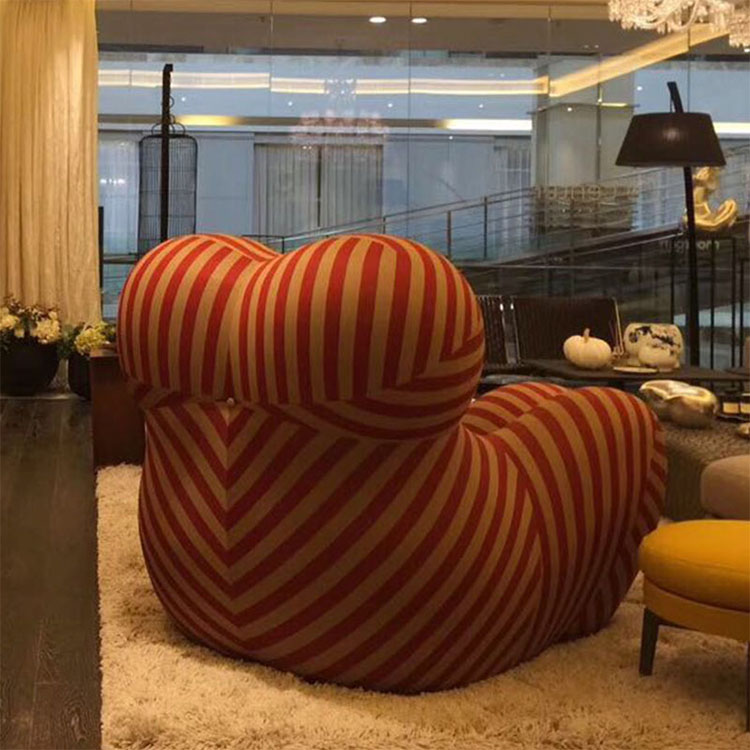 ,Gaetano Pesce 就给 Up 系列座椅配了纯色或条纹的外套,创造了一种十分独特的视觉效果,最初的红色版本尤为惹眼,可谓非凡卓越。这些版本也成为了米兰三年展、纽约现代艺术博物馆、维特拉设计博物馆以及蒙特利尔美术馆的永久收藏。