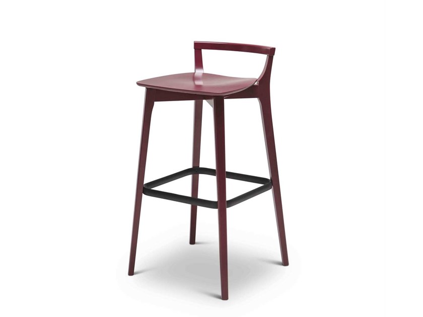 Suitable for the most widely differing rooms and coordinated with all the models in the Origins 1971 collection, the tall stool with streamlined legs in solid wood, joined by a metal part which acts as footrest. As with the chairs in the collection there is also choice of eight different seat versions for the stools, to meet any functional and decor requirement.