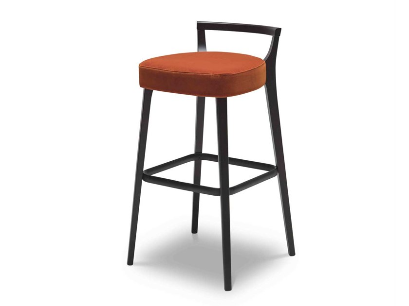 Barstool / Solid beech frame / Solid beech backrest / Upholstered plywood seat, slim size / Total Height 91cm / Seat Height 80cm / Widht 50cm / Depht 51,5cm