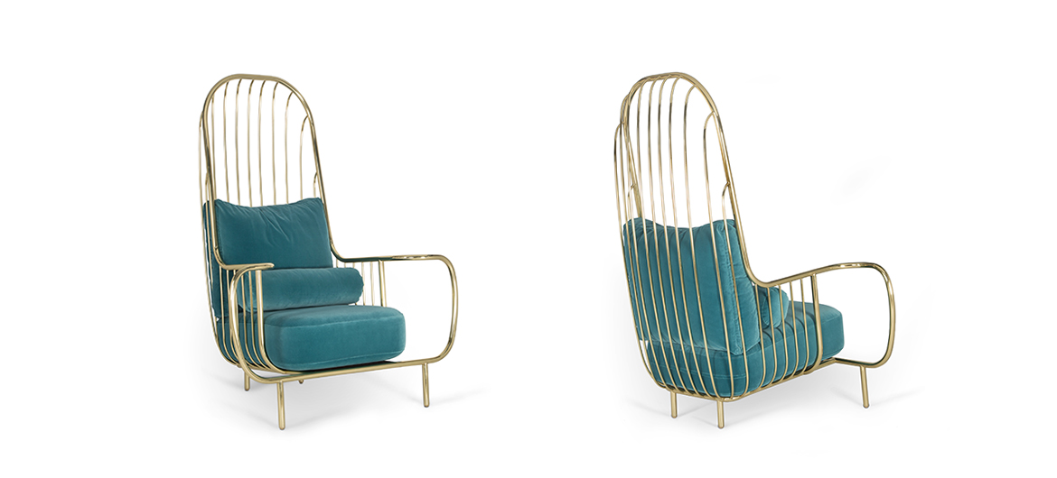 葡萄牙bessa贝萨Liberty Armchair自由高背扶手椅复古鸟笼椅 不锈钢休闲椅 绒布绝配天鹅绒