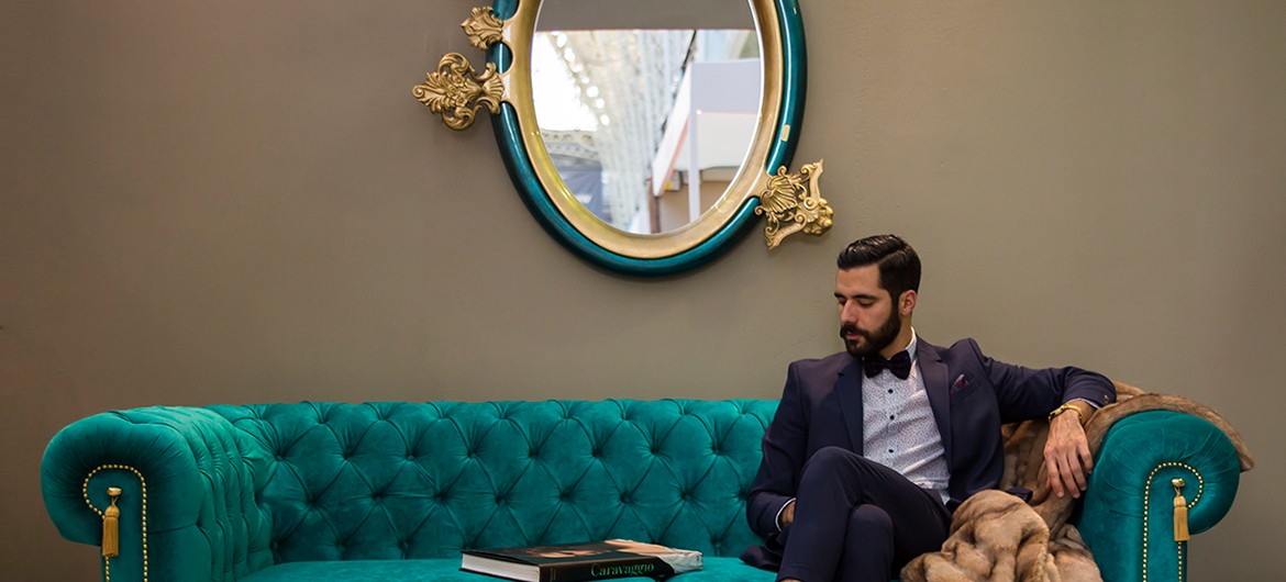 The Uk sofa was inspired in the famous Chesterfield sofa. It is said that these sofas, leather settees with a distinctive deep buttoned, quilted leather upholstery and seat low base, were designed in the Uk in the early eighteenth century. Bessa redesigned this icon of the world design and created a unique chesterfield. The Uk sofa appears to be levitating. This refreshing look comes from the exquisite brass tube foot. The velvet adds a touch of excellence by accentuating the bright color with moving lights. The originality of the Uk sofa is in the innovative details while remaining familiar to the original design. This is another piece that brings back passionate memories!