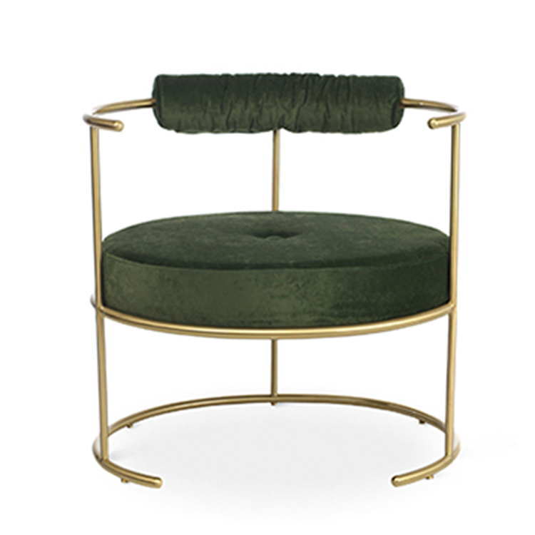 The Uk armchair was inspired in the famous Chesterfield sofa. It is said that these sofas, leather settees with a distinctive deep buttoned, quilted leather upholstery and seat low base, were designed in the Uk in the early eighteenth century. Bessa redesigned this icon of the world design and created a unique chesterfield. The Uk armchair appears to be levitating. This refreshing look comes from the exquisite brass tube foot. The velvet adds a touch of excellence by accentuating the bright color with moving lights. The originality of the Uk sofa is in the innovative details while remaining familiar to the original design. This is another piece that brings back passionate memories!