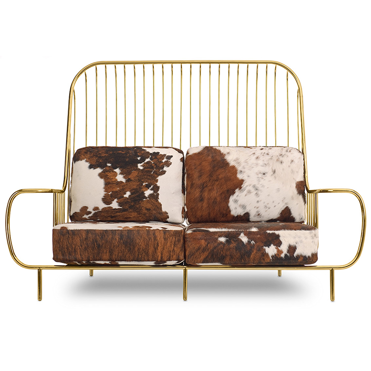 The Uk armchair was inspired in the famous Chesterfield sofa. It is said that these sofas, leather settees with a distinctive deep buttoned, quilted leather upholstery and seat low base, were designed in the Uk in the early eighteenth century. Bessa redesigned this icon of the design world and created a unique chesterfield. The Uk armchair appears to be levitating. This refreshing look comes from the exquisite brass tube foot. The upholstery of this piece consists in synthetic fur with a soft and warm touch. This is an innovative concept that distinguishes the Uk sofa from all the other Chesterfields in the world. The originality of the Uk sofa is in the innovative details while remaining familiar to the original design. This is another piece that brings back passionate memories!