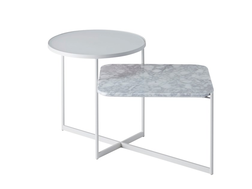一系列现代的、互补的桌子,结合了大理石和玻璃,由一个精致的钢框架支撑,以赞美工业之美。功利主义的方法,是因为偶尔表都是详细的功能。每个表有两个水平对比表面材料。使用它们作为边,咖啡或床头柜上,自己或组合在一起,