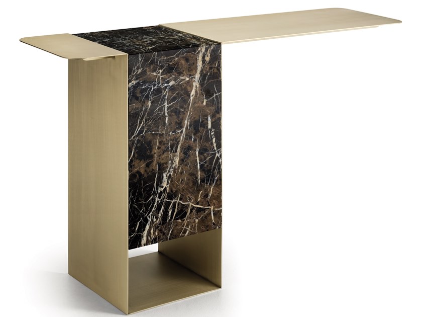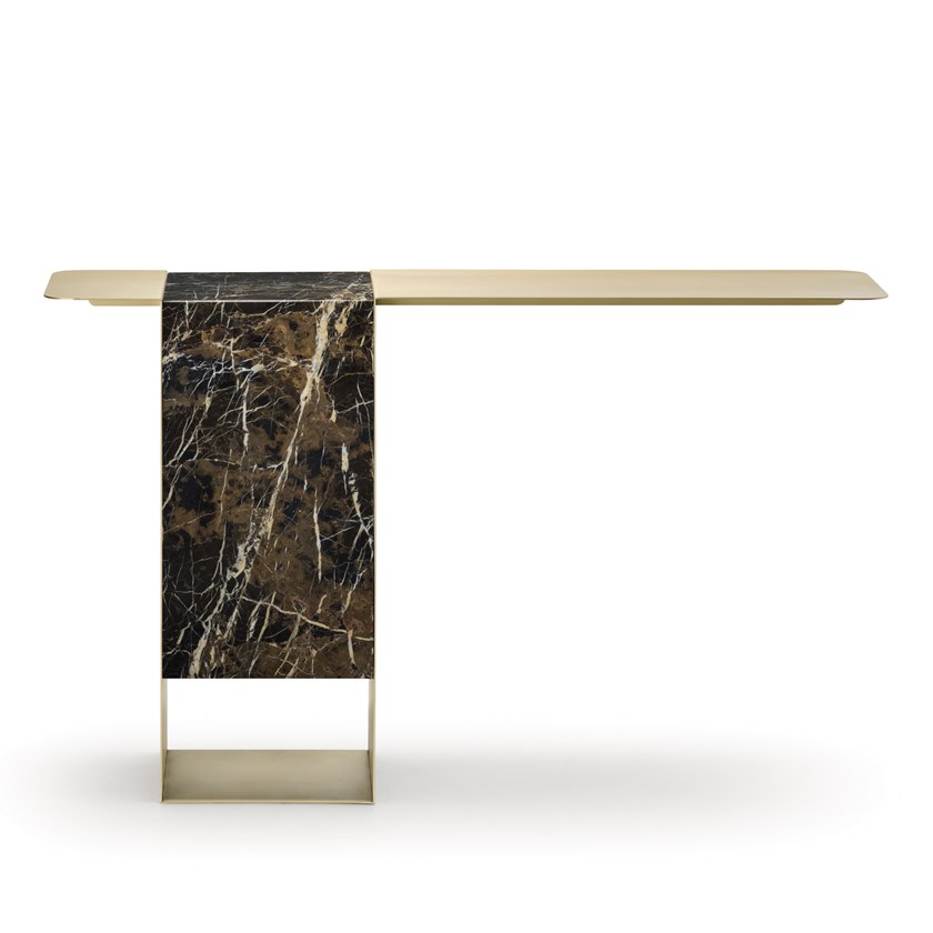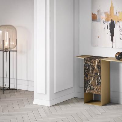 伊设计主玄关桌 薄铜板桌面 大理石基石柱 不锈钢金色黄铜 电