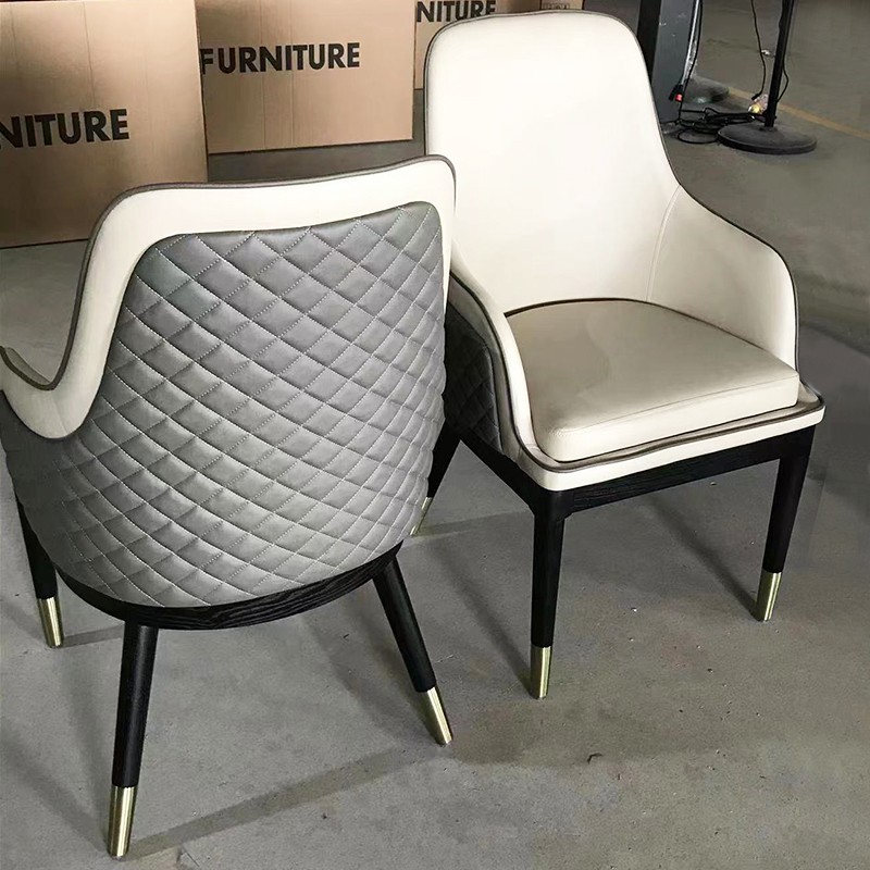 宾利家居肯德尔刺绣皮餐椅椅子 实木脚双面软包装饰皮革西皮超纤