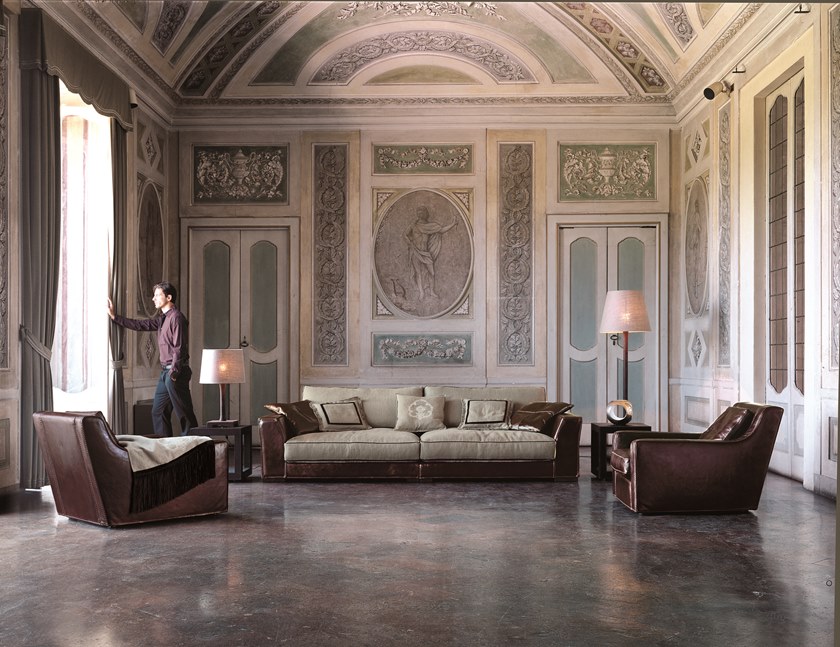 Alfred is a fabric and leather sofa with removable cover阿尔弗雷德是一个织物和皮革沙发可移动覆盖