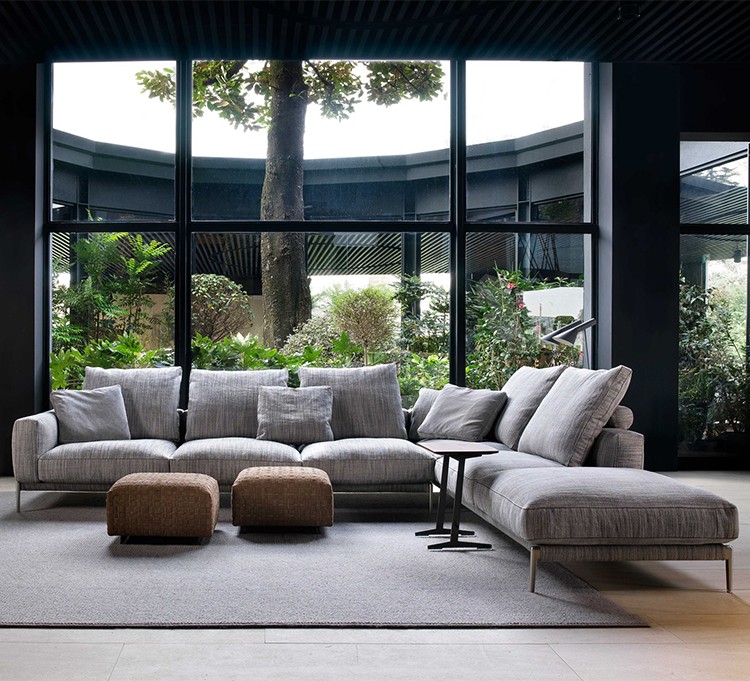意大利Flexform 2019年新品 Antonio Citterio设计罗密欧沙发 金属异同形脚架 极简简洁L形贵妃转角多人沙发
