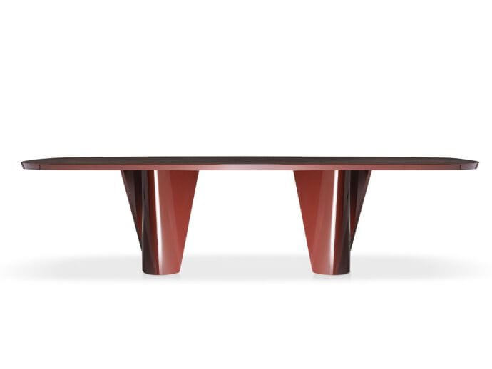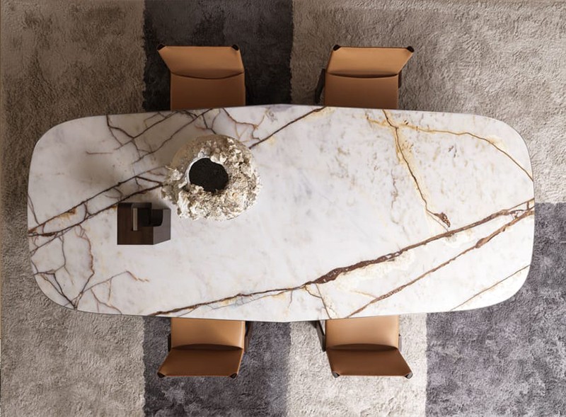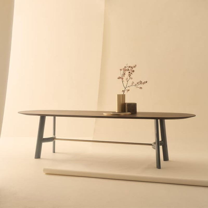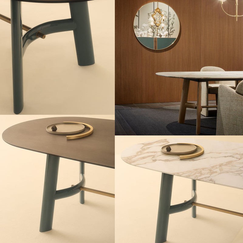 8月,罗伯托·拉泽罗尼设计的餐桌,是对栈式餐桌“复杂简洁”的参考。它们作为坚固的工作工具诞生,顶部很薄,所以很轻。支撑架用镀金青铜和略微弯曲的木制横档相互连接,反映了激发桌子的美学。光滑和亚光元素创造了独特而个性化的视觉组合,改变了产品的吸引力,使其适应多种环境。