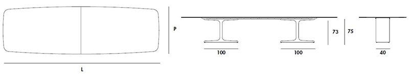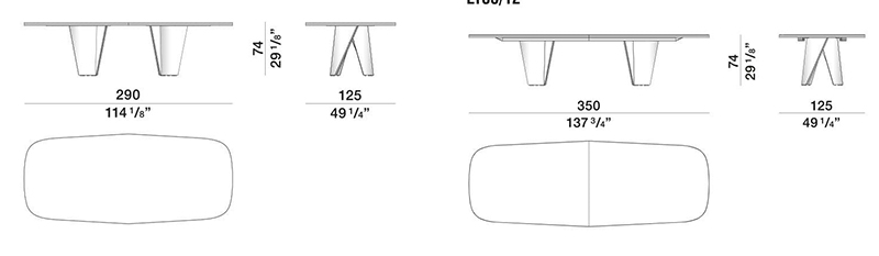 椭圆形桌子:长2900毫米x宽1150毫米x高730毫米