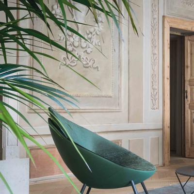The design of the Lock armchair designed by Alessandro Busana stems from the aim of creating a seat capable of expressing a sense of protection and comfort. An armchair where the person takes centre stage, which develops around the user through a padded strip that folds onto itself to form a backrest. "I think the feeling of protection and safety is something we seek everywhere. It is what distinguishes a welcoming and familiar setting, such as one's home, making it different from any other place", comments Alessandro Busana.