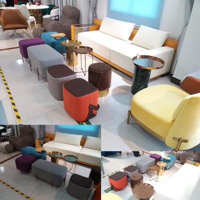 艺术贵而不奢米兰建筑师设计 个性换鞋凳 简约金色 布艺沙发边儿童凳