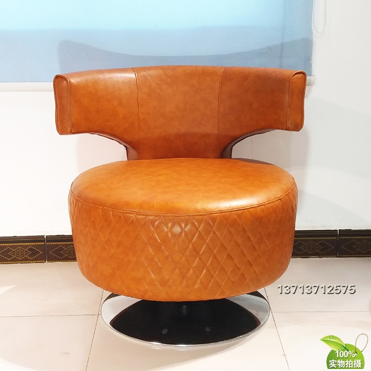 意大利英国 酒店休闲转椅格子压线皮革真皮布艺 定制家具旋转脚盘