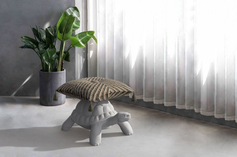 在Turtle Carry大获成功后,Marcantonio与Qeeboo合作,推出了这只标志性海龟的小版本。龟壳支撑着一棵珠宝树。它们由白色不透明树脂制成,吸引了人们的注意,它们完美地适合房子的任何角落。