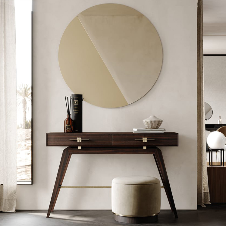 意大利设计之美 不锈钢细节,倾斜的支腿营造出独特的复古外观,而两个抽屉则提供了充足的储物空间。