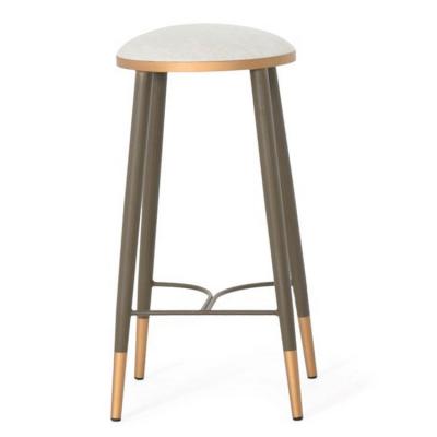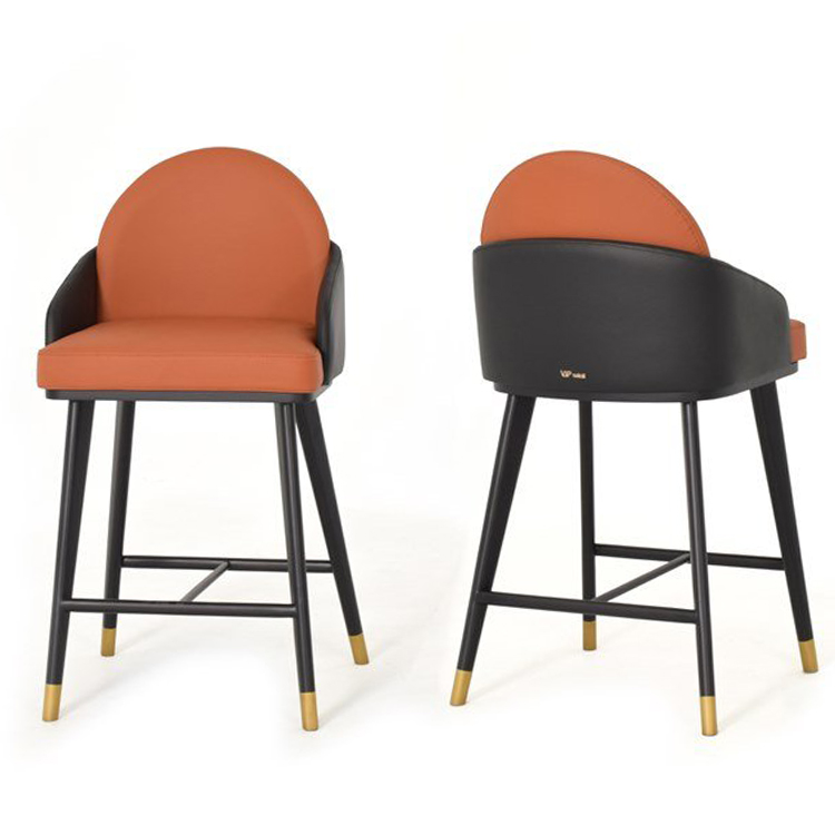 Albania2022年新款新中式实木皮革VIP Saloti MIA米娅凳子吧椅 阿尔巴尼亚 五金高脚酒店椅不锈钢金色铜色电镀
