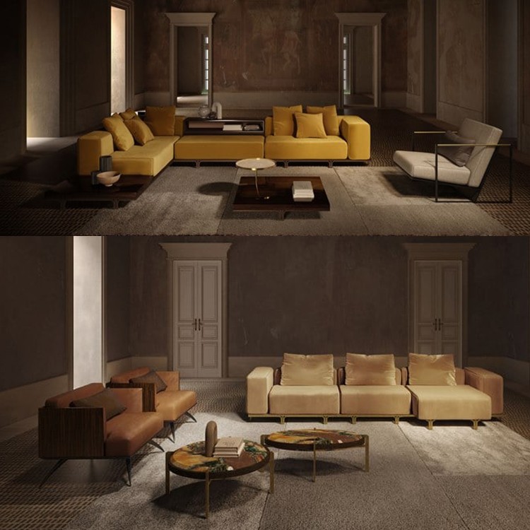 意大利罗萨托ROSSATO 不锈钢五金电镀软包沙发 方块形多少位组合沙发