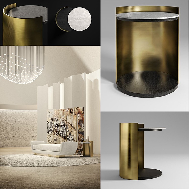 作为一个边桌,百搭而不过度,Rever可以完美贴合。客厅和卧室一样多 这些形式源于圆形的重复,它变成了一个抽象的金属标志。 顶部的下方形成了一种不对称,使顶部能够“使底座更靠近座椅或床,以获得实用的支撑表面”。