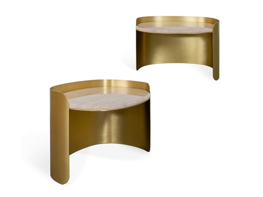 The ERNESTside table features a geometrical and sculptural design made in metal with a straight line back. The front part is what adds another dimension to the interior design thanks to its well-de