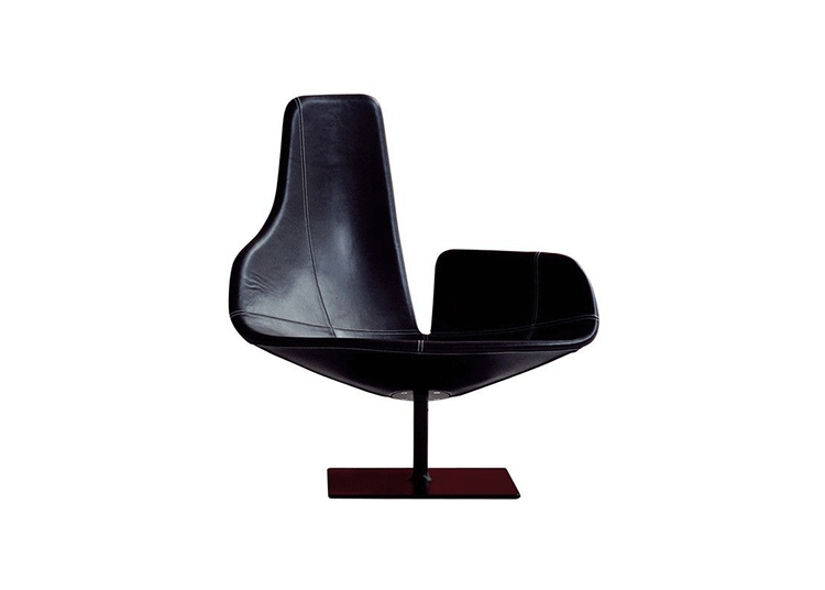Fjord Relax is offered with a steel swivel base and constructed using an internal steel frame and features fabric or leather upholstery, with top stitch. Relax armchair can also be specified with contrast front/back fabric and stitching, please call for details.
