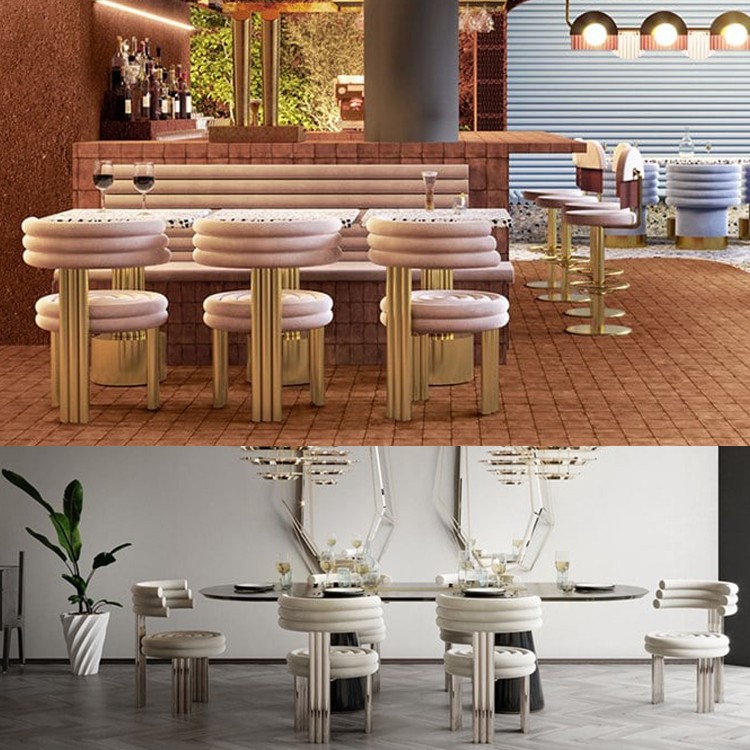 4款西班牙Essential Home 不锈钢吧椅餐椅休闲椅 Masquespacio镀金摩登设计