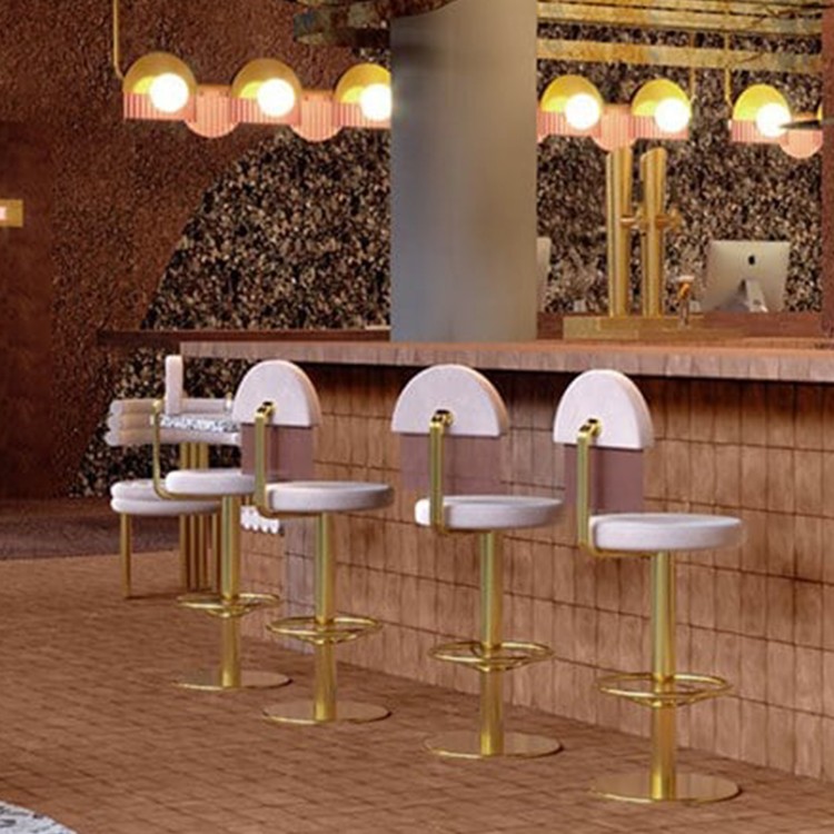 这款现代的中世纪酒吧凳是一件富有挑战性但又不失友好的作品,同时也是时尚的象征。这是一个精致的结合与粉色的漆抛光黄铜结构基础和高质量的羊皮内饰。这是完美的时尚装饰之外,提供一种真实性和安慰。