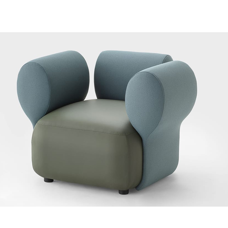 布艺扶手椅沙发。充满活力以及适应极强的软垫座椅。优雅地环绕座位的一侧。