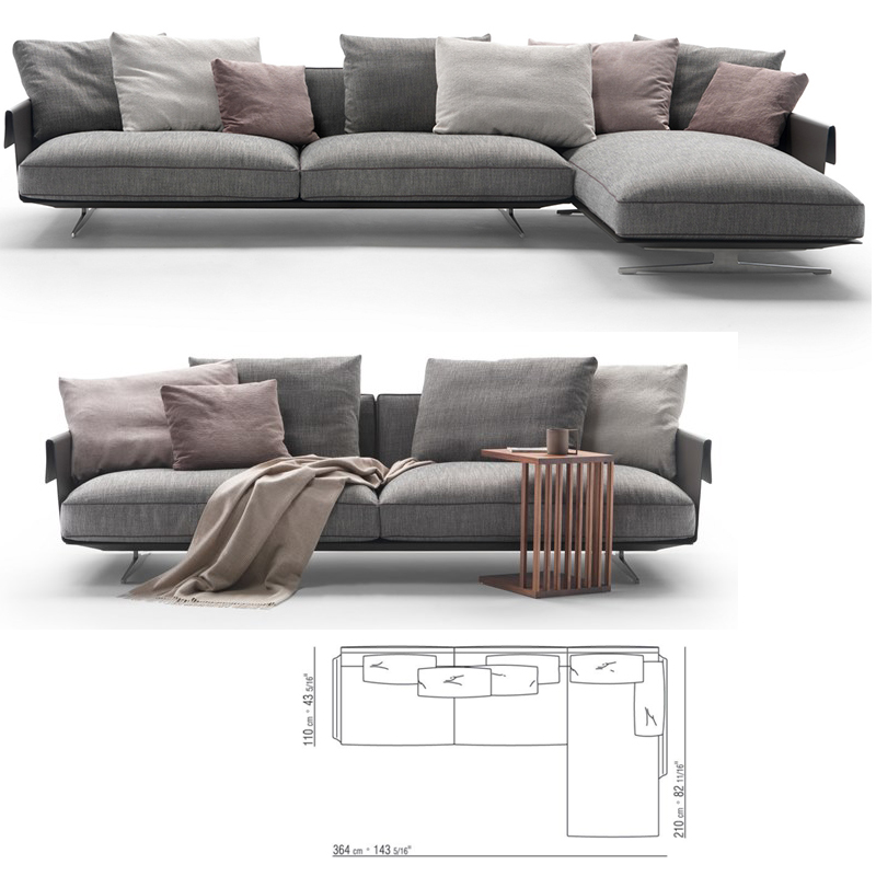第二款:Italy意大利Flexform 设计新品 Antonio Citterio设计罗密欧ROMEO沙发 金属异同形脚架 极简简洁L形贵妃转角多人沙发