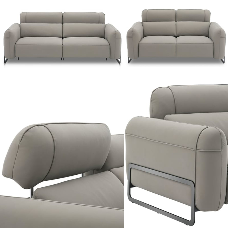干净的线条和光滑的表面定义了沙发的基本轮廓,并通过脚踏板和扶手上的装饰缝线加以增强。为了获得个性化的触感,可以在扶手上添加可选的金属条。