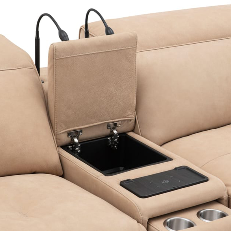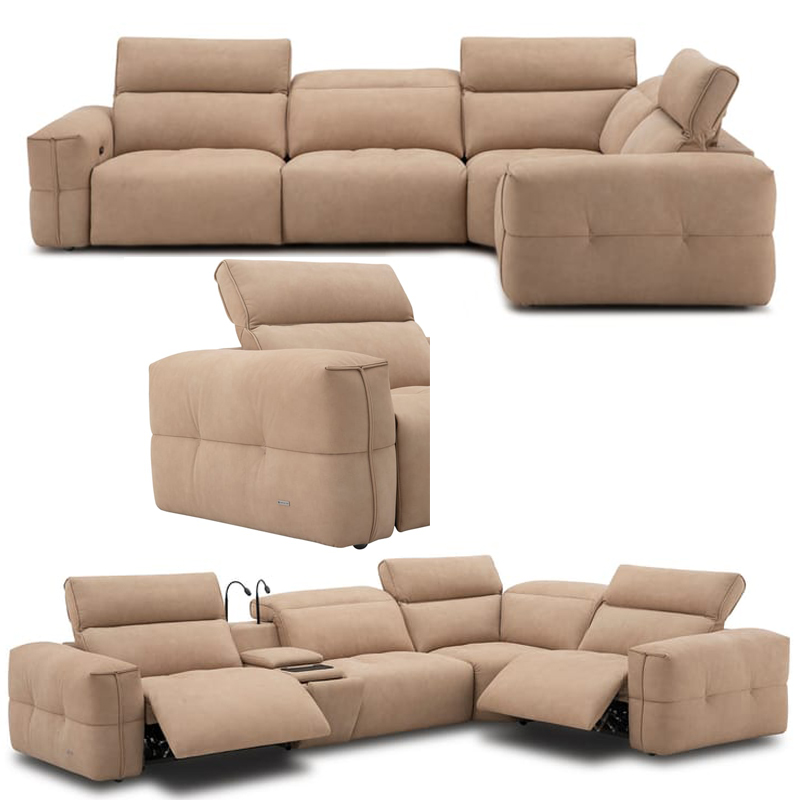 Bloom沙发从生活的需要出发,融入现代设计和创新理念,精心打造了一个多功能电动沙发系统。配备手动可调头枕。还可以选择配备存储、读取和无线充电器的多功能中间位置模块。它有1个带储物空间和饮料架的中控台。按下按钮,座椅向前滑动,脚踏板不断向上移动。一个真正的放松和幸福的天堂,在那里你可以享受一点“自我时间”。