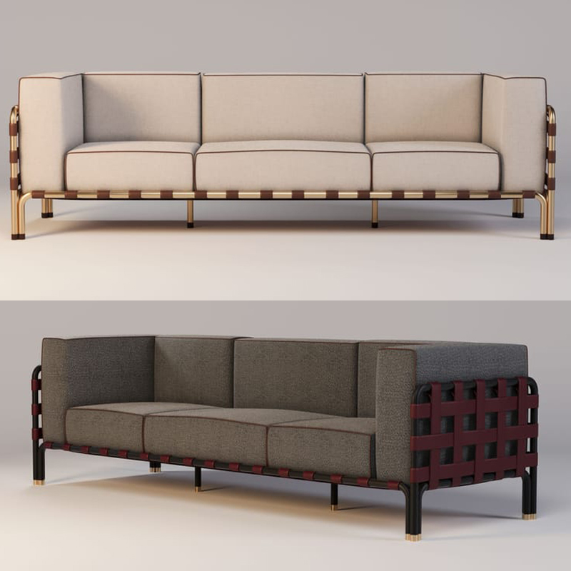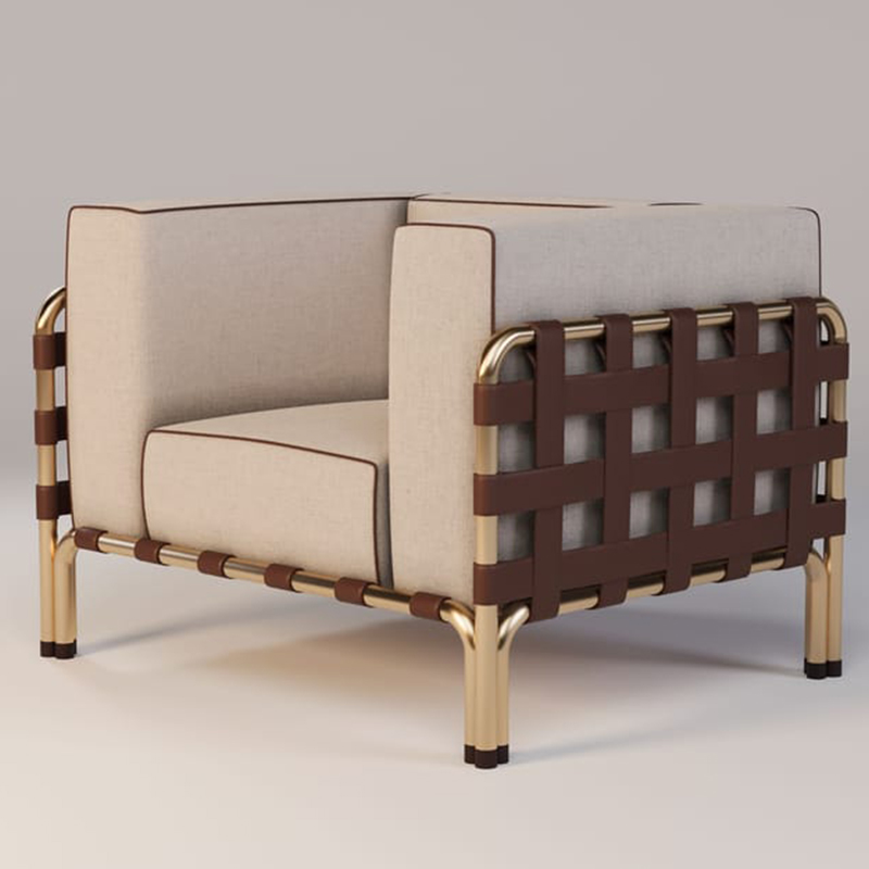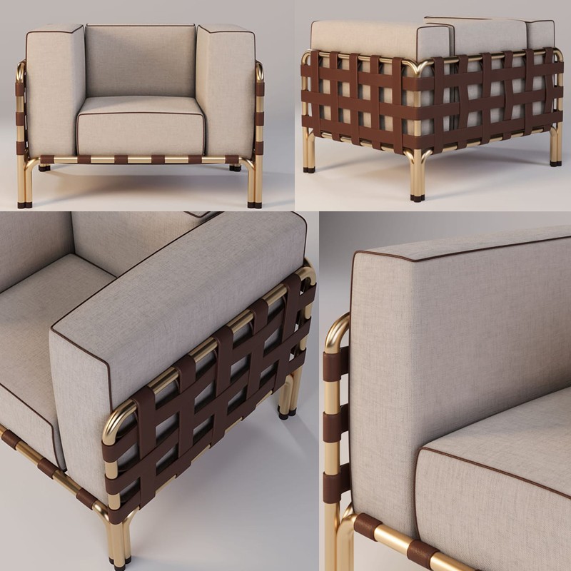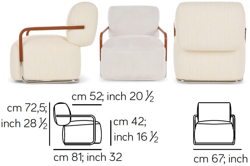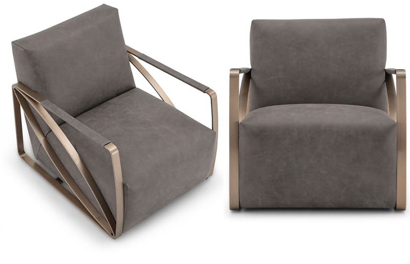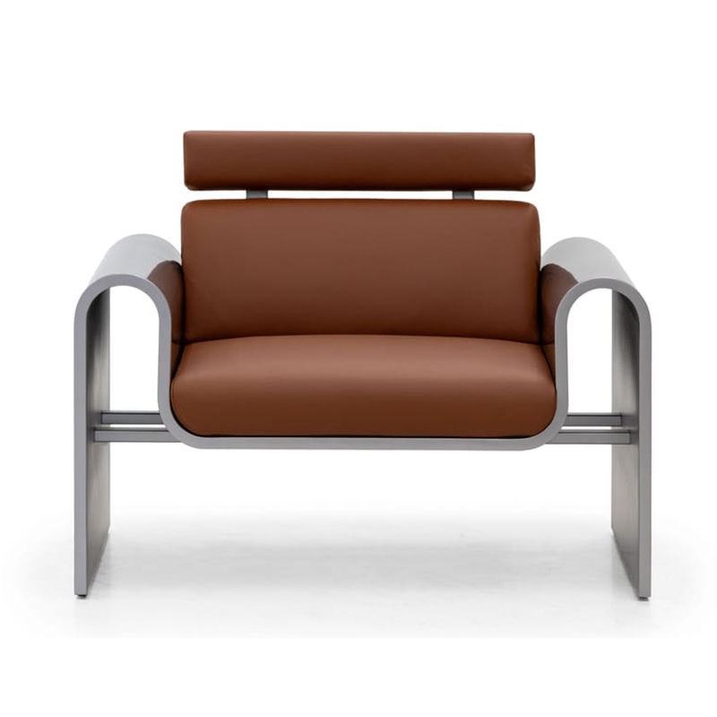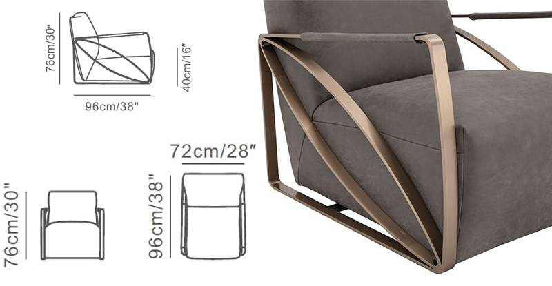 其玫瑰金不锈钢框架与其高端感觉相呼应。从接缝质量上可以欣赏到的精致皮革作品只能与时尚高级定制相媲美。其宽阔而舒适的座位区,略微向后倾斜,保证了极佳的人体工程学舒适度。时尚的金属扶手进一步增强了设计。